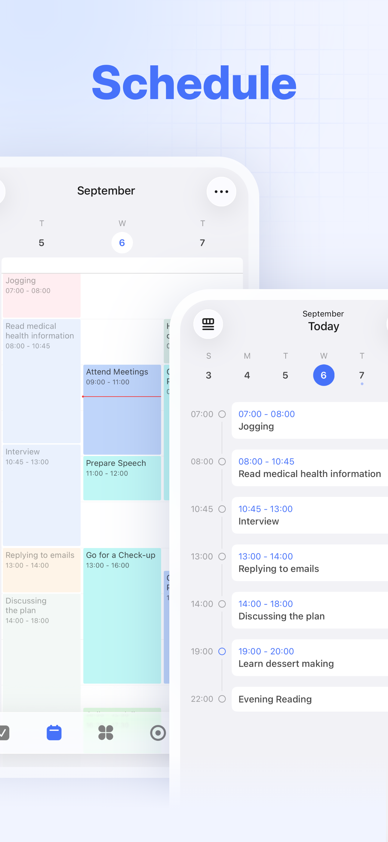 Enjoy a clean, easy-to-navigate calendar with TickTick. Visualize your schedule weeks or months ahead with our free Day Planner. Integrate third-party calendars like Google Calendar and Outlook for maximum efficiency
