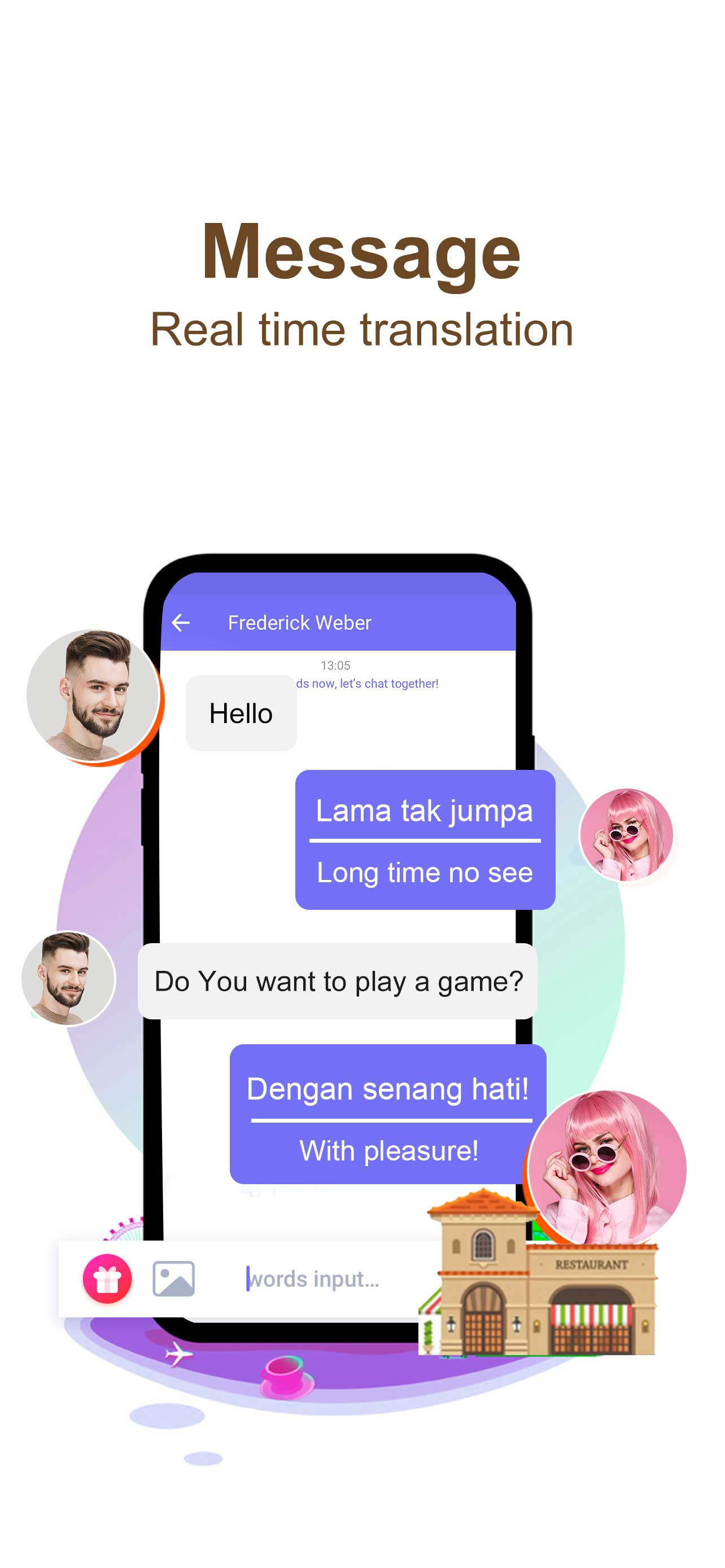 - Don't worry if you don't speak the language of your friend. We will translate your chat in real time so you can have an amazing live chat and easily make friends from all over the world