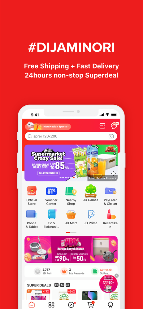 JD.ID is an online shopping application in Indonesia that you can rely on to shop from anywhere and anytime. With JD.ID, you are able to transact for your household needs, fashion, skincare items, gadgets, vacation tickets, and even pay for your bills and installments online. Shopping at JD.ID is practical, easy, safe, and products are guaranteed to be authentic and reliable.